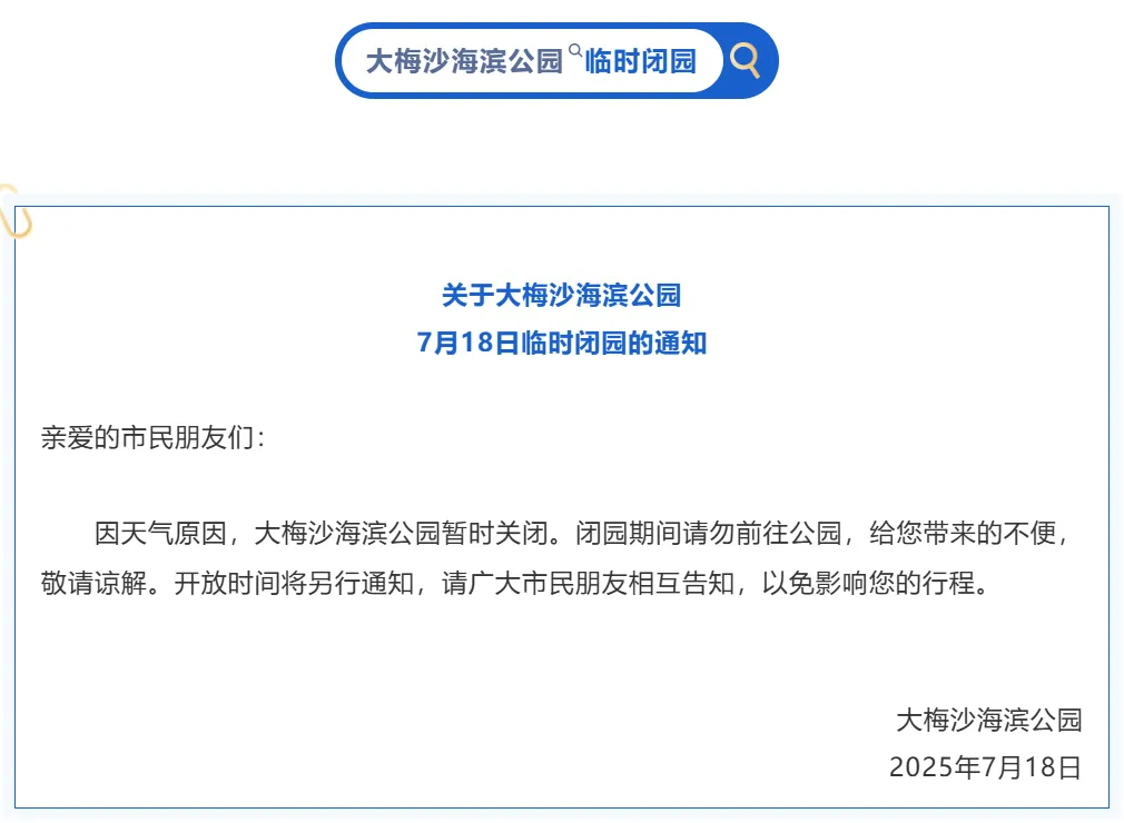大梅沙海滨公园临时闭园,恢复时间暂时未知