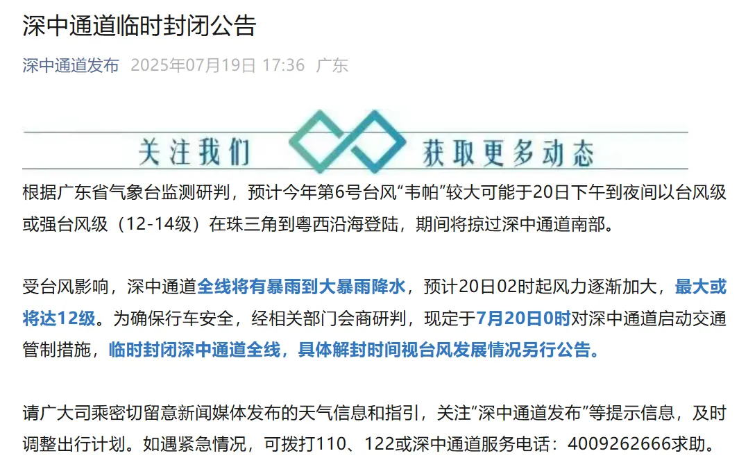 刚刚!深圳发布台风黄色预警!多景区关闭、航班有严重影响、深中通道将临时封闭、码头停运......