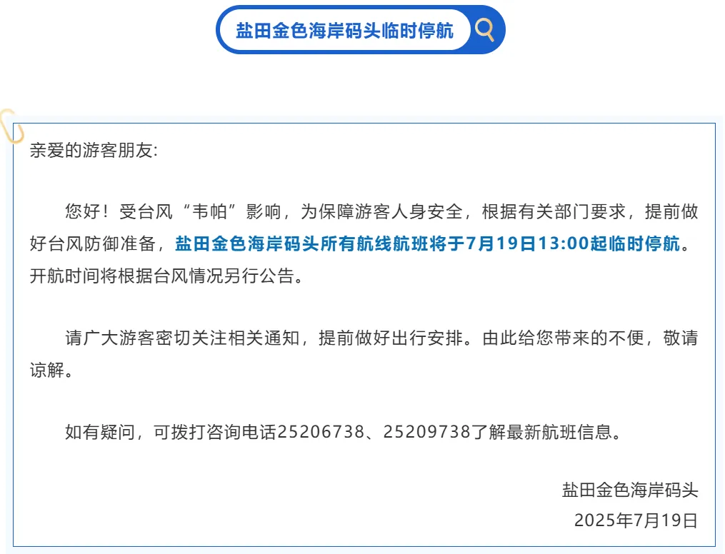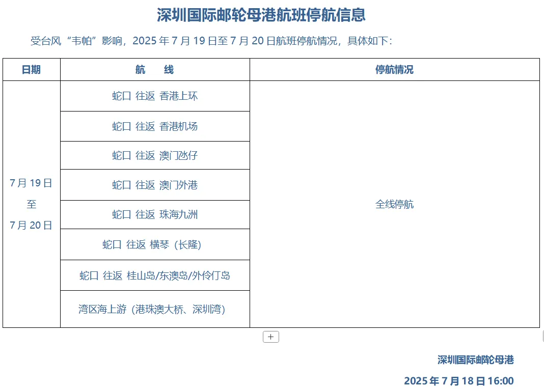 深圳各码头停航信息汇总