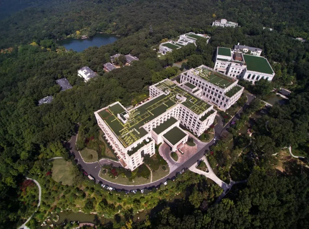 ▲深秋航拍下被梧桐树包裹的南京美龄宫
