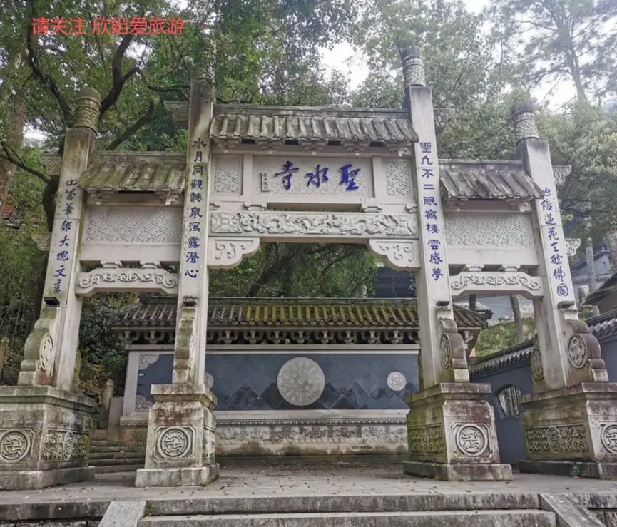 圣水寺始建于宋绍圣三年,坐东朝西,山上龙虎岩下清泉不涸。唐末瘟疫时,百姓取泉水饮用控制疫病,故称“圣水”,寺以此得名。传承临济宗,总面积1544平方米,依山而建,殿堂楼宇分四个梯级,现存建筑为明清所修。主要建筑有天王殿、大雄宝殿,殿后有泻露池。寺内有古樟树、僧舍利塔、碑刻。出客堂过石桥可见栖云洞,洞内有十八罗汉青石像,为镇寺之宝,是现存最早最完整的石刻罗汉造像。