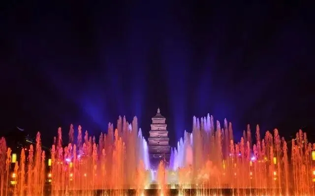 塔在大慈恩寺里头 , 玄奘法师当年就在这儿翻译佛经。 楼阁式砖塔 , 每层都能登 , 站上去一览长安风貌。 晚上记得去北广场看音乐喷泉 , 亚洲最大 , 灯光水柱配合音乐 , 视觉冲击真的强!