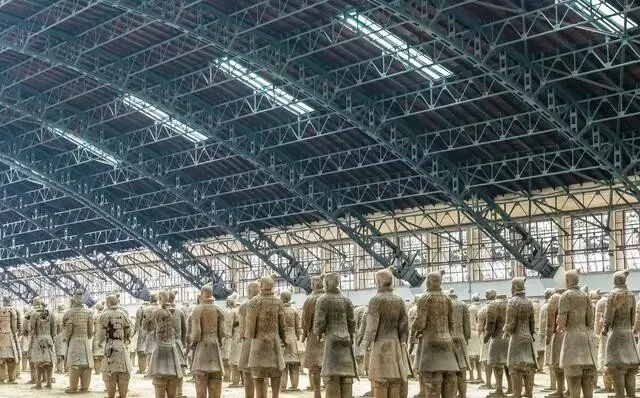 跪射俑、将军俑、骑兵俑 , 几千个陶俑站在坑里 , 阵型整齐。 那种震撼感 , 照片拍不出来 , 必须亲眼看。 还有一对铜车马 , 号称"青铜之冠" , 精致得不像两千多年前的东西。