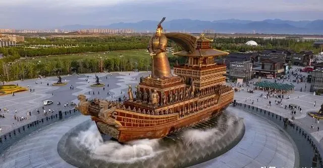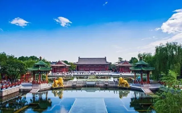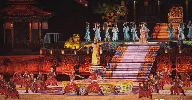这话真不是吹的!中轴那条步行街 , 九组主题群雕一字排开 , 什么盛世帝王、英雄故事 , 全给你摆出来。 走两步就有演出 , 《霓裳羽衣》《贞观之治》 , 随便撞上一场都惊艳。