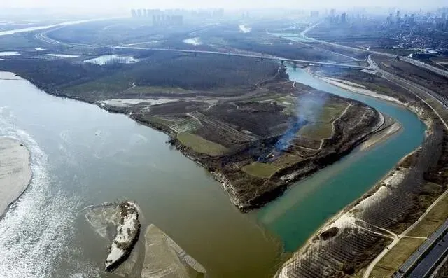 导航"泾渭分明观景台" , 黄的渭河 , 绿的泾河 , 两条河交汇但不融合。 亲眼看到的时候真的会感叹 , 古人诚不欺我...