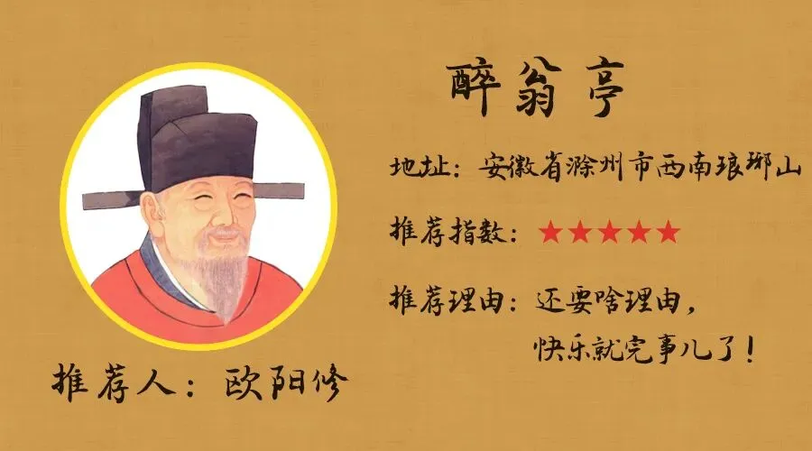 重点打卡这山里的醉翁亭。那就是一个美景集中地,坐下来办个野外派对,那也是食材随处可得,有鱼有菜,丰盛得很。 用欧阳修的话来说,那就是—— 如果你想要来个露天party,赏美景,跟着欧阳修准没错。