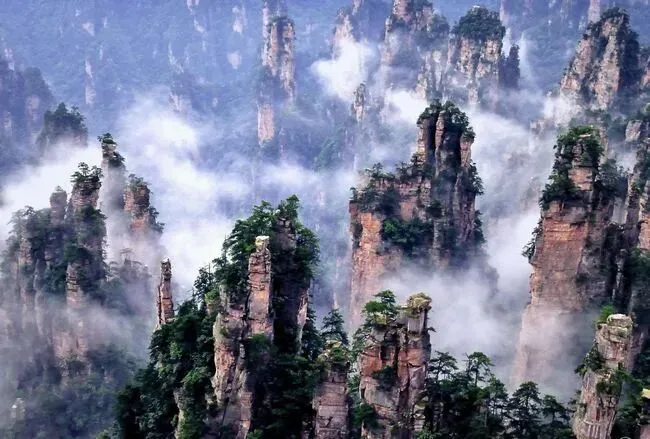 三千石英砂岩峰林构成“悬浮星球”般的地质奇观,被《阿凡达》导演称为“哈利路亚山”原型,乘坐百龙天梯或漫步峰林栈道,可近距离感受大自然的鬼斧神工。