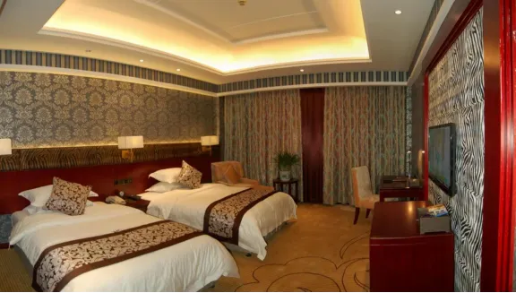 温泉酒店客房,按四星标准打造,客房装修高雅、豪华、舒适,设有豪华标间、豪华单间、风情小木屋、商务套房、总统套房等各种房型共96间。