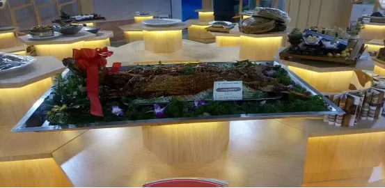 餐饮部设有大型宴会厅、自助餐厅,早餐厅,可供1000余人同时就餐,特色烤全羊2017年11月参加《达州市首届地标餐饮、地标菜品》评选,被评为达州市十佳地标菜品之一。其烤全羊色、香、味、形俱全,而且肉质酥香、焦脆、不膻不腻的名肴,让人美味醇厚,回味无穷,时尚新颖远近闻名。