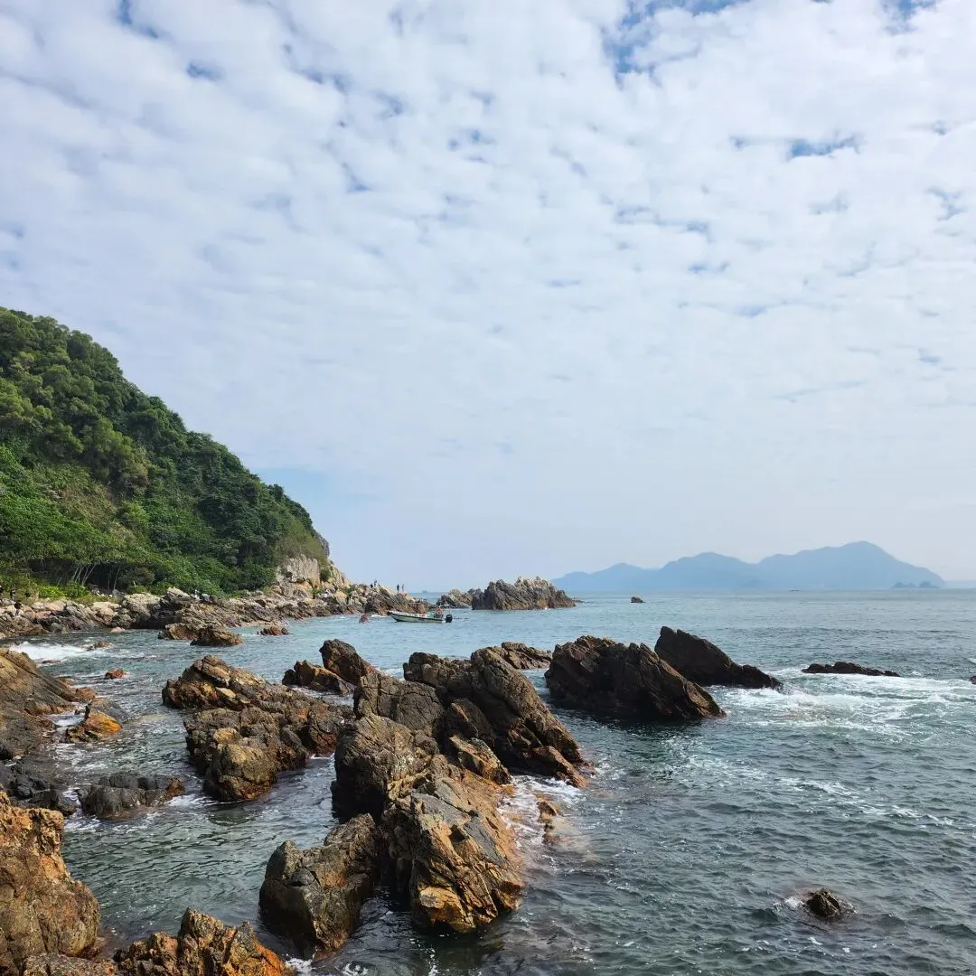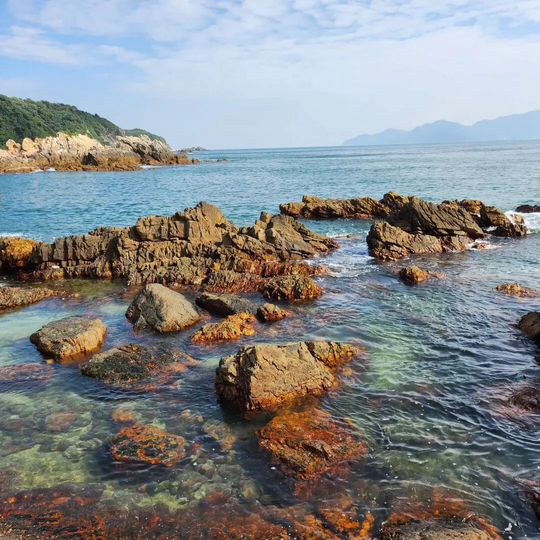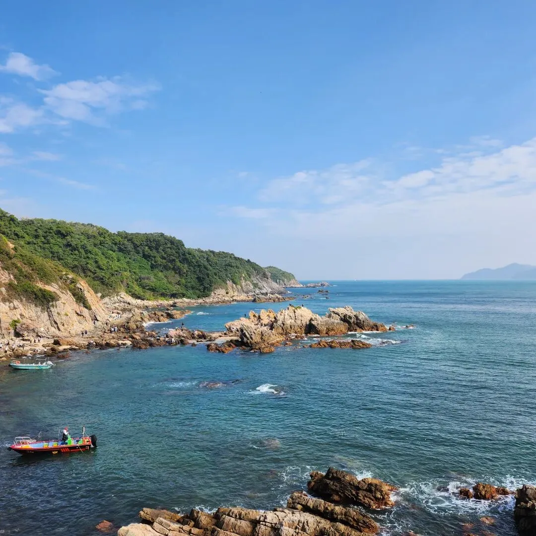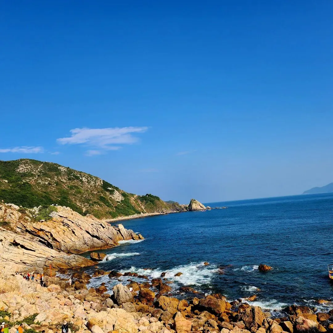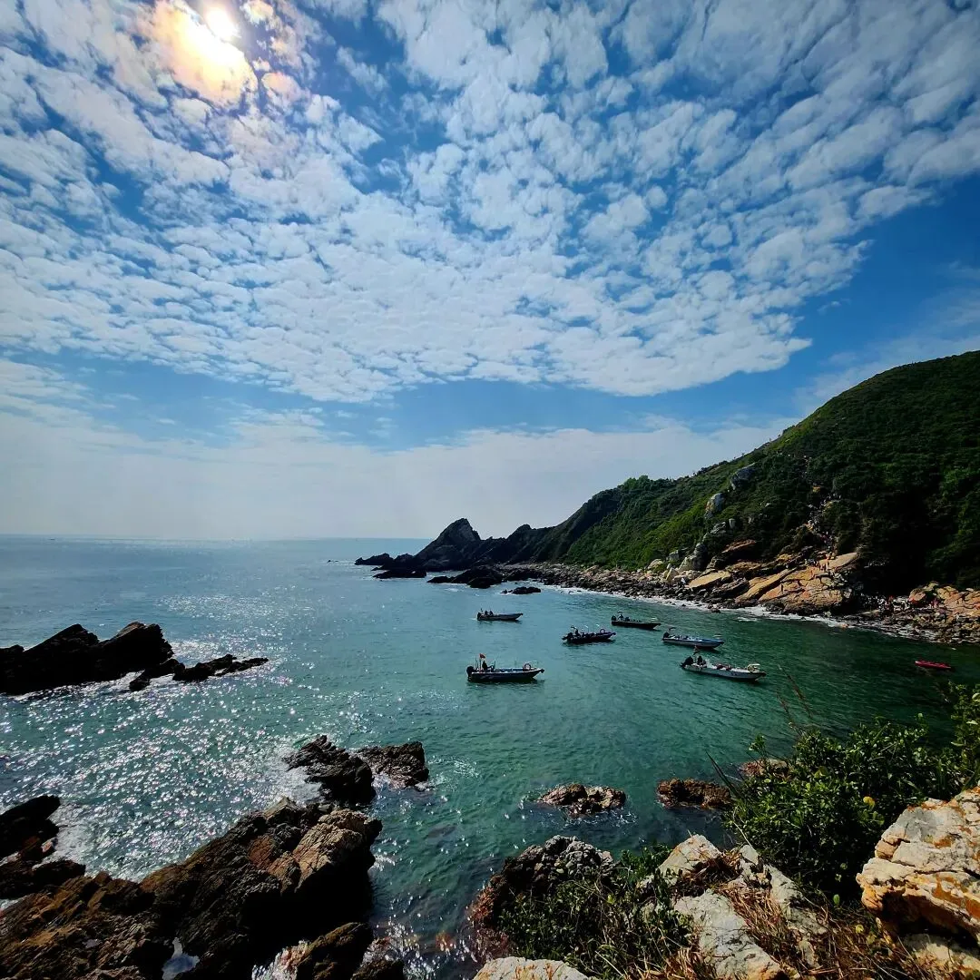 在深圳,如果说有一个地方非去不可的话,我会毫不犹豫地向你们推荐“东西涌穿越”路线,又名“东西涌海岸线”,位于深圳市大鹏半岛,是深圳最美丽、经典的海岸线徒步路线之一,全程约6.5公里左右,徒步大约需要4-5小时。这条路线无太多刻意打造的打卡点,途中会过青山、碧海、岛屿、礁石、海蚀岩洞等,海蚀地貌丰富齐全且纯天然,无敌海景更是不在话下,是户外徒步,露营,观赏日出日落的绝佳去处。