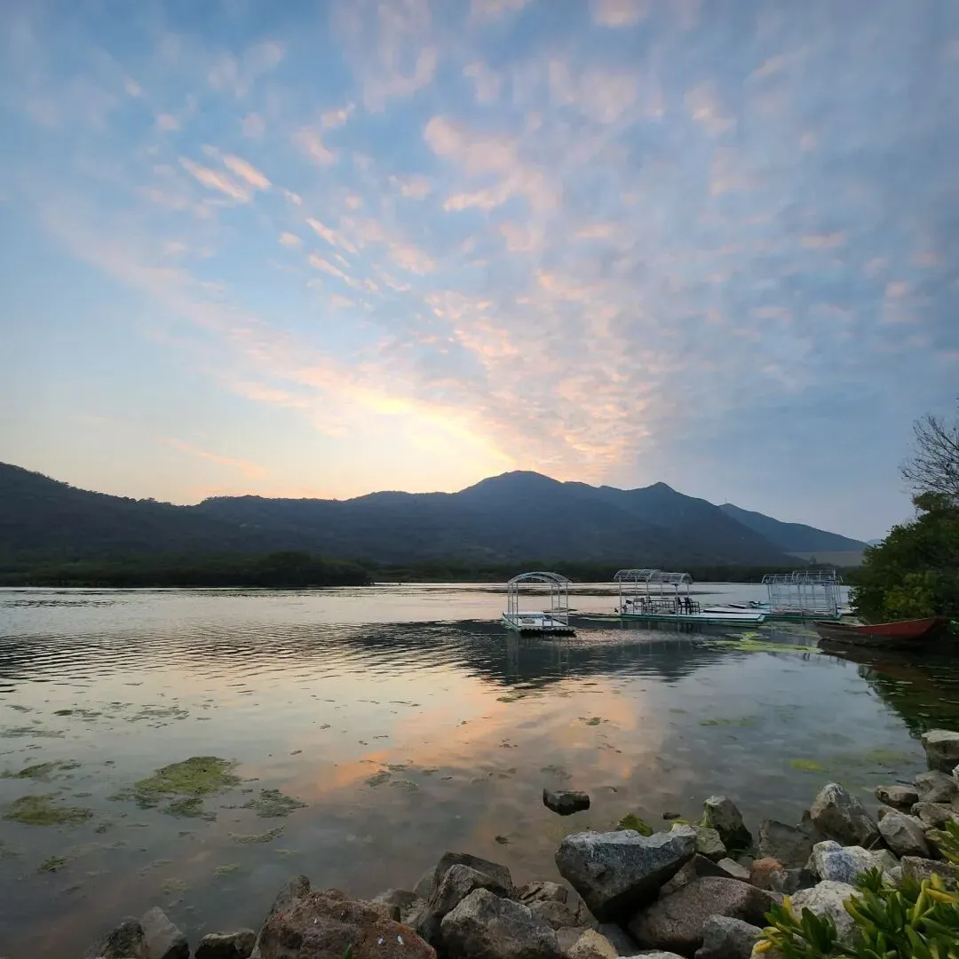 再行走个5-600米,此时路程已接近尾声,如果你精准地把握时间,你就绝对不会错过这波夕阳海景;到达西涌后,可以一边打车一边休息,目的方向是东涌社区工作站,17-18点时段是打车高峰期,可以选择私人的包车或网约车。话不多说,直接上图,收工!