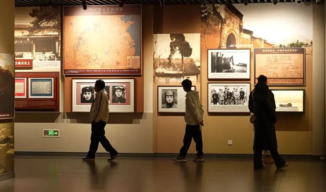 距离泸定桥仅百米的纪念馆内陈列着丰富的历史文物和翔实的图片资料,生动地再现了红军飞夺泸定桥的英勇壮举。在展厅里,许多游客阅览着夺桥战斗的故事,暖黄色的灯光映照着他们专注的面容。