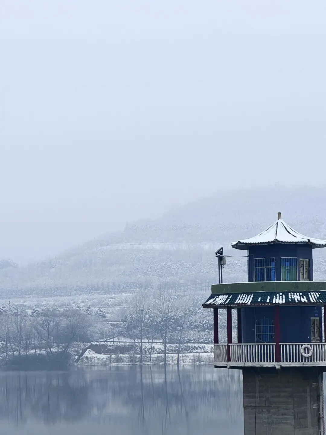 🍲山尖裹着雾凇像撒了糖霜,湖面映着冷蓝调的山影,连岸边的秋黄都成了温柔的点缀!偶尔有一只小鸟从水面掠过,留下一道转瞬即逝的涟漪,很快,一切又恢复了平静。在这深冬暖阳里,骆峪水库散发着一种令人沉醉的静谧与祥和~