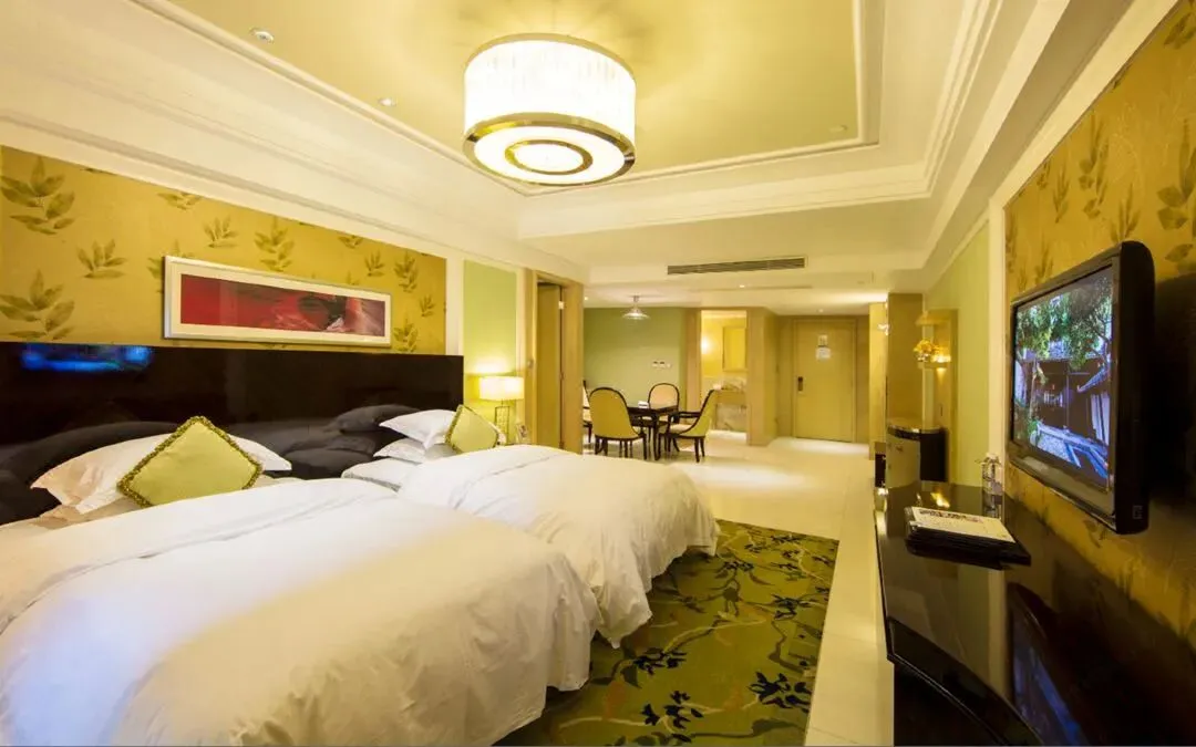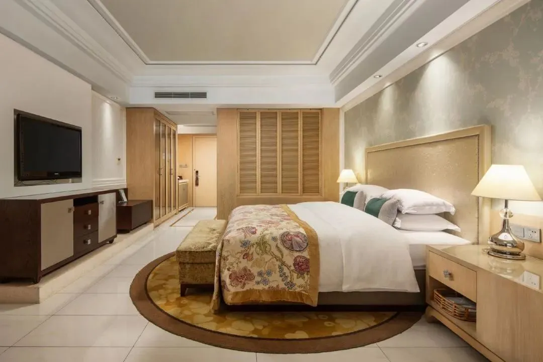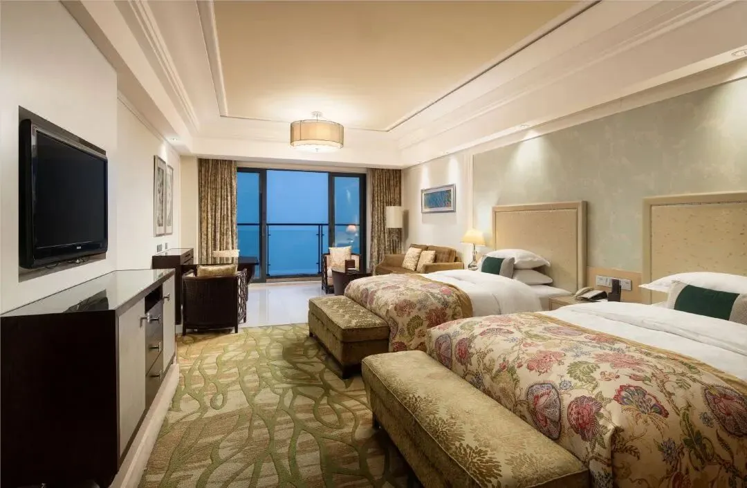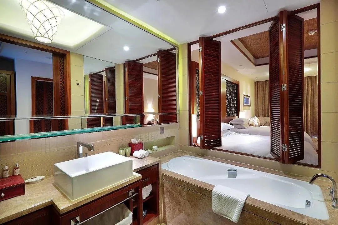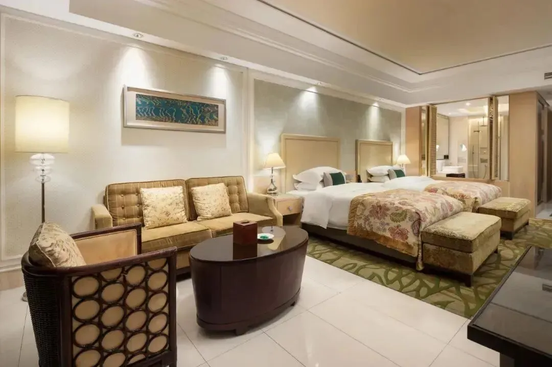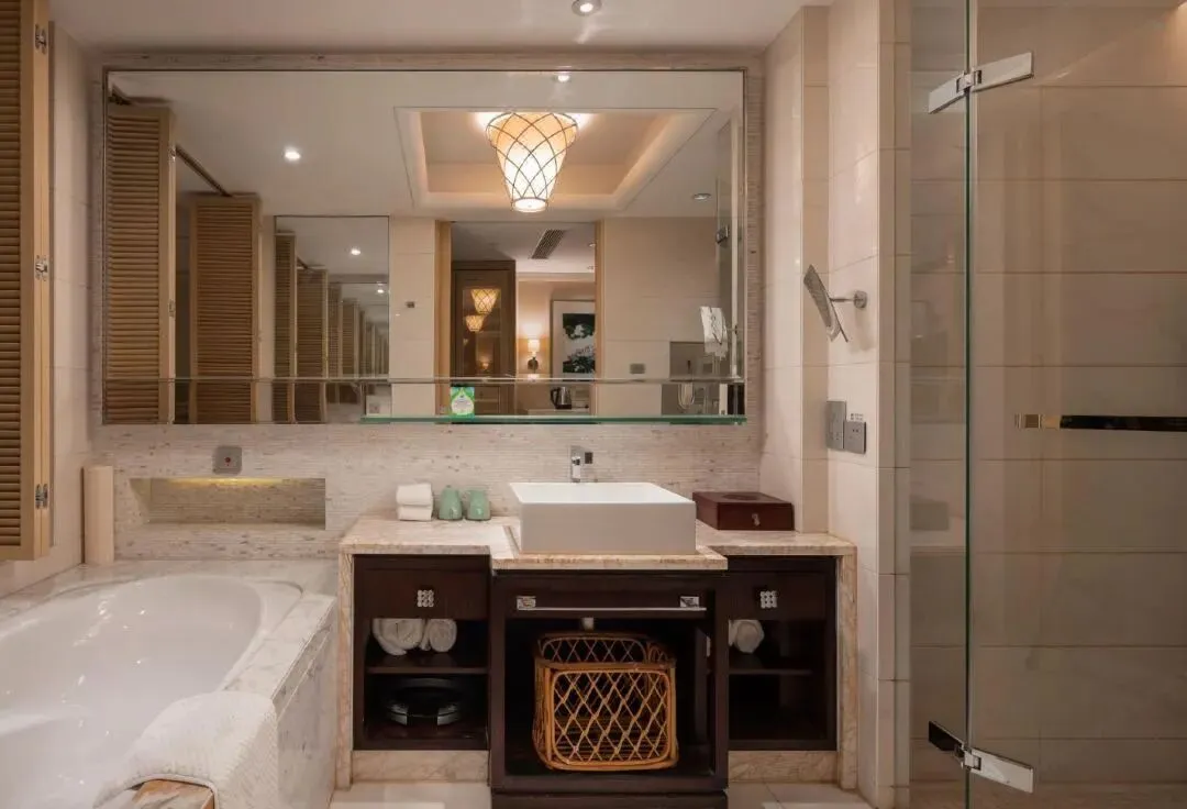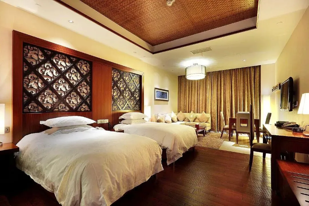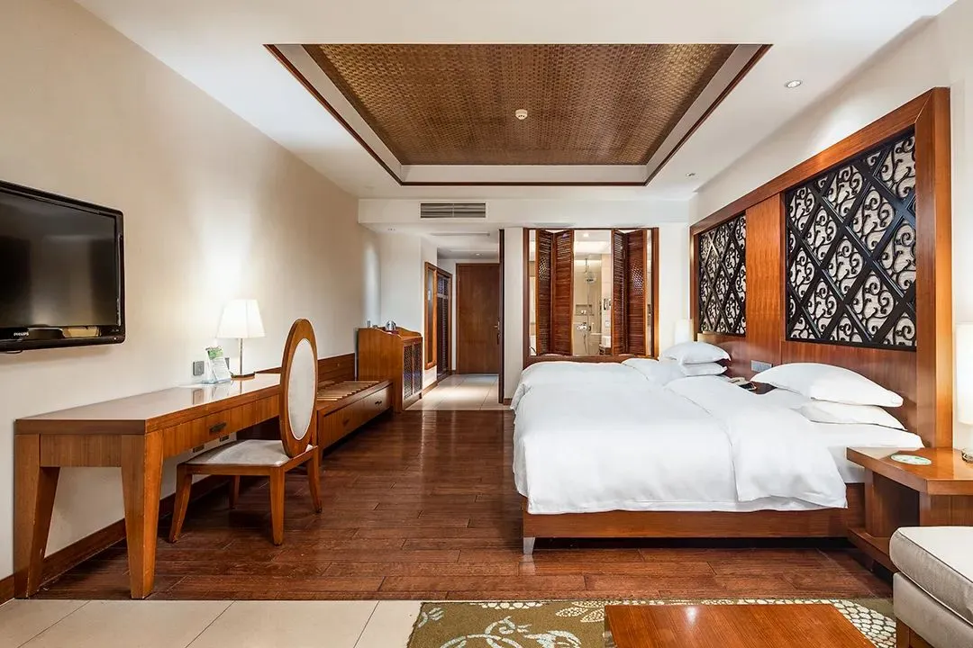 酒店层高21层,拥有各类客房两百余间,每个客房均面朝窖湖,并有独立观景阳台,是真正意义上的全湖景酒店。客房风格既具东南亚度假风情,55㎡起跳的大面积客房,很宽敞,适合全家入住,客房设计融入东西方风情,豪华气派。
