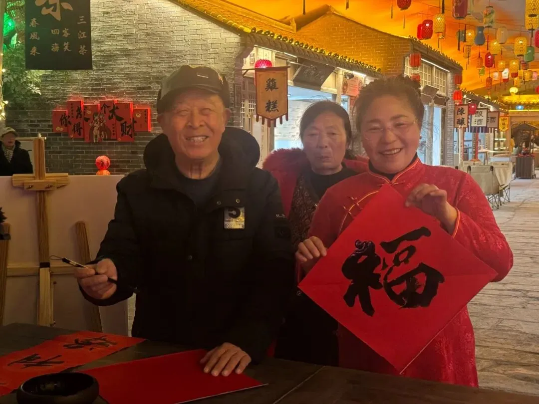 写福区更是排起了长长的队伍,男女老少纷纷提笔,一笔一画勾勒出对新年的美好期许。刚劲有力的楷书、飘逸洒脱的行书,每一幅福字、每一副对联都承载着满满的祝福。这些饱含心意的作品,最终都张贴在了高沟雅集,成为景区一道独特的文化风景线。