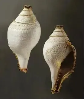 4、跨地域的文化传承:古印度时期海螺已被视作吉祥器物,佛教传入后纳入神圣象征体系,佛陀说法被比作“螺音清越”,可传遍十方;后续在西藏、中原等地佛教文化中,法螺逐步融入佛像背光、壁画、器物纹饰等艺术创作,强化了其在佛教文化中的核心地位。