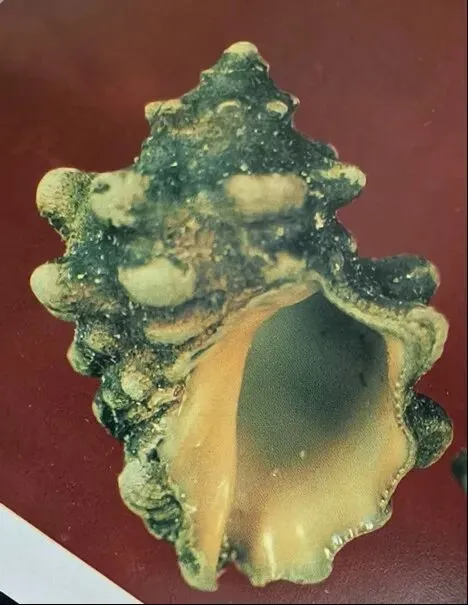 1、 螺类形态的精准契合:从正面观之,大佛外侧孤岩形似香螺(Neptunea cumingi Crosse)、荔枝螺(Thais,俗称香螺、辣螺)、红螺(Rapana,俗称海螺)的综合体,岩顶雕刻的葫芦形塔刹对应螺顶,呈“螺顶向上、螺口向下”的姿态;岩石四周的突起纹路,并非无意义的天然痕迹,而是工匠还原螺类形态的细节设计——香螺、荔枝螺(尤其瘤荔枝螺)均有明显突起,印证了工匠对生物形态的细致观察。需说明的是,此孤岩形态与生物学上的法螺(Charonia tritonis,螺层较高、颜色鲜艳)不符,核心契合普通螺类轮廓,且承载法螺的宗教象征意义,属于“形态写意、寓意写实”的艺术创作。