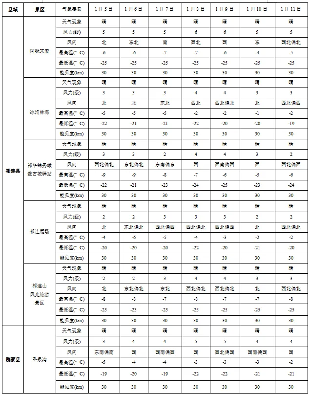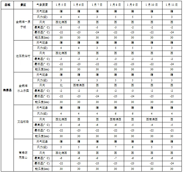 您现在的位置是:首页 > 国内旅游目的推荐 > 正文 国内旅游目的推荐 海北州主要景区一周天气预报 admin2026年01月05日 15:41:59国内旅游目的推荐11 海北州主要景区一周天气预报一、具体预报二、旅游气象条件分析周内全州以晴好天气为主,能见度较高,其中1月8日-9日海晏、刚察有吹风天气,建议合理安排出游时间。三、旅游建议1.本周气温较低,外出请及时增添衣物;2.户外旅游时需及时关注最新气象信息,做好防范准备。来源/海北州气象台本期责编/公保杰监制/智华坚赞投稿邮箱/603162401@qq.com联系方式/0970-8642766版权归原作者所有,如有侵权请立即与我们联系点击下方阅读数字报 转载请说明来源于"旅荐网",部分内容转载自网络,如有侵权请联系qlwl@foxmail.com删除 本文地址:https://www.15386.cn/post/78256.html 上一篇 浙江知名景区突发坠崖事故! 下一篇 在2026年的第一天,仙岛湖生态旅游风景区管 相关文章 香港3天2晚旅行攻略 资讯 | 清明节假期出游提示:做好行程规划 文明绿色出游 用英文逛中国:这个网站能直接规划行程 假期正当时!快收好这份蟠桃山游玩攻略! 清明假期别浪费!3个AI神器让旅游攻略10分钟搞定 近期堪舆行程安排 异乡好居新加坡2026直播季(附直播行程安排) 北京春季旅行攻略皇城春意,花开满城 游玩攻略已备好,速码出发,下一站桓台! 2026年行程计划(有更新) 发表评论 取消回复 评论列表 这篇文章还没有收到评论,赶紧来抢沙发吧~
