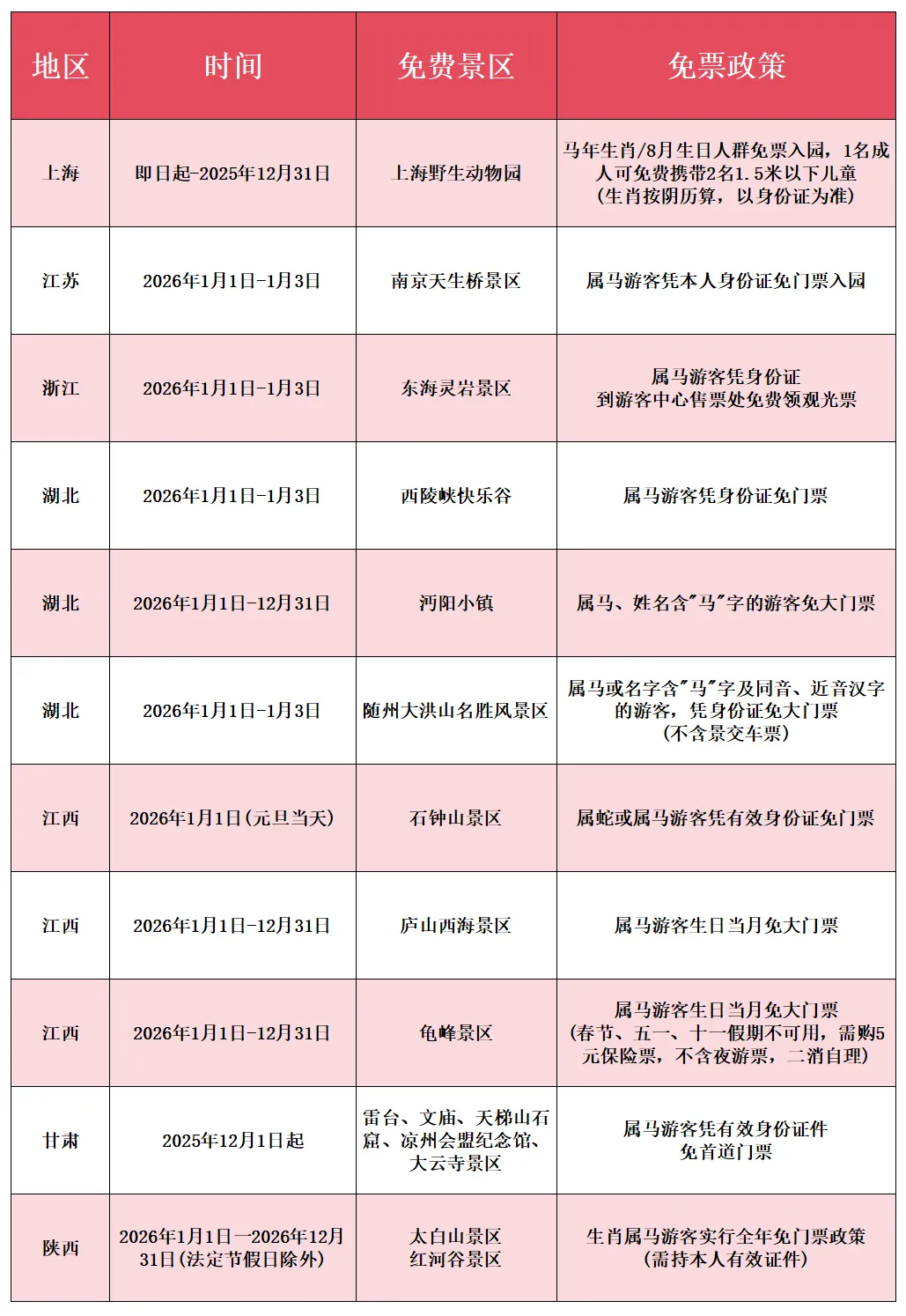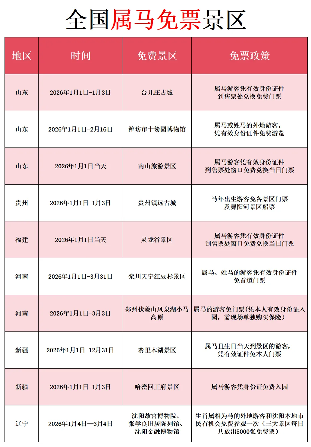 本命年的宝子们集合啦!2026年属马的小伙伴有福了~全国超多景区对你们免费开放,我熬夜整理了这份保姆级攻略,赶紧码住!