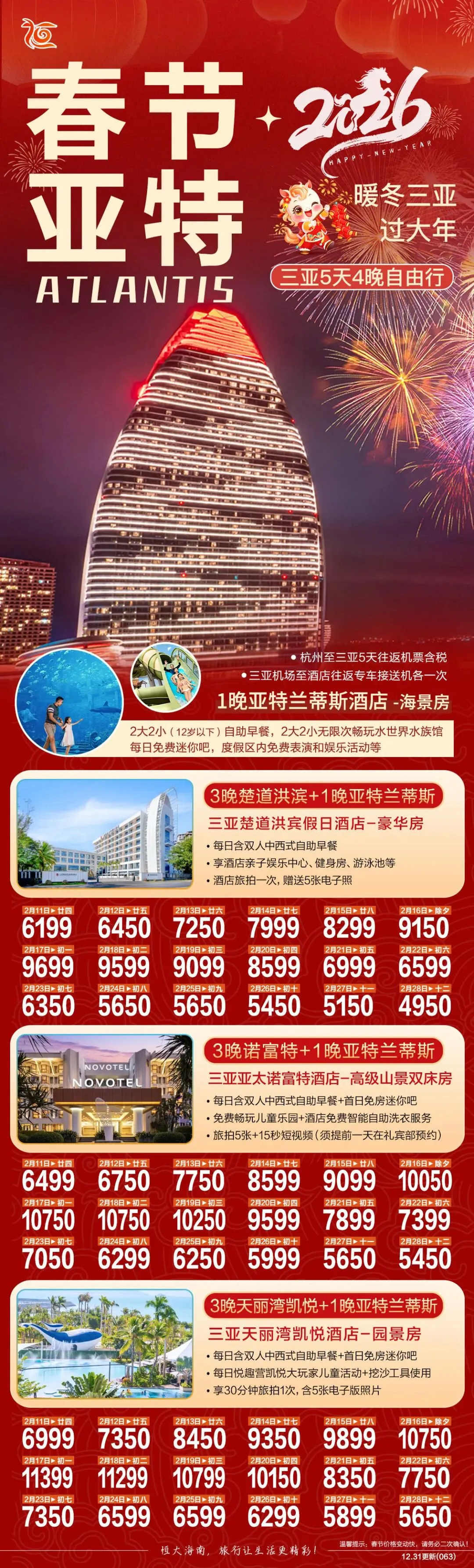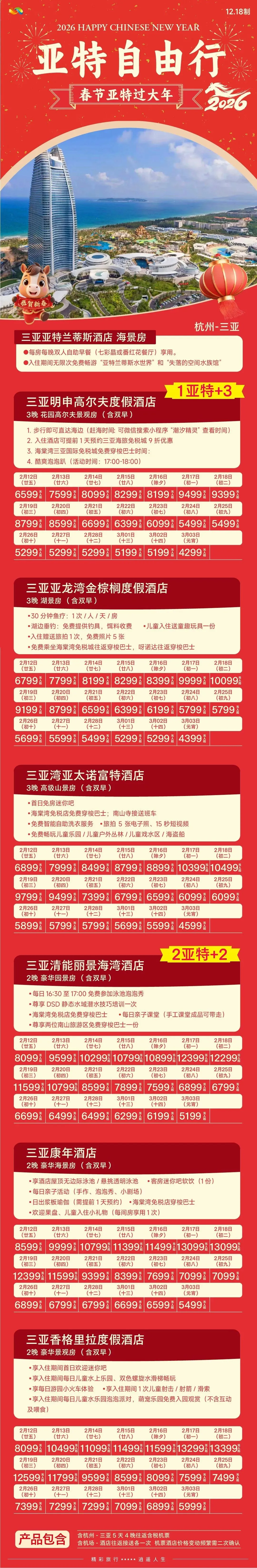 2026寒假春节国内热门旅游目的地自由行半自由行推荐