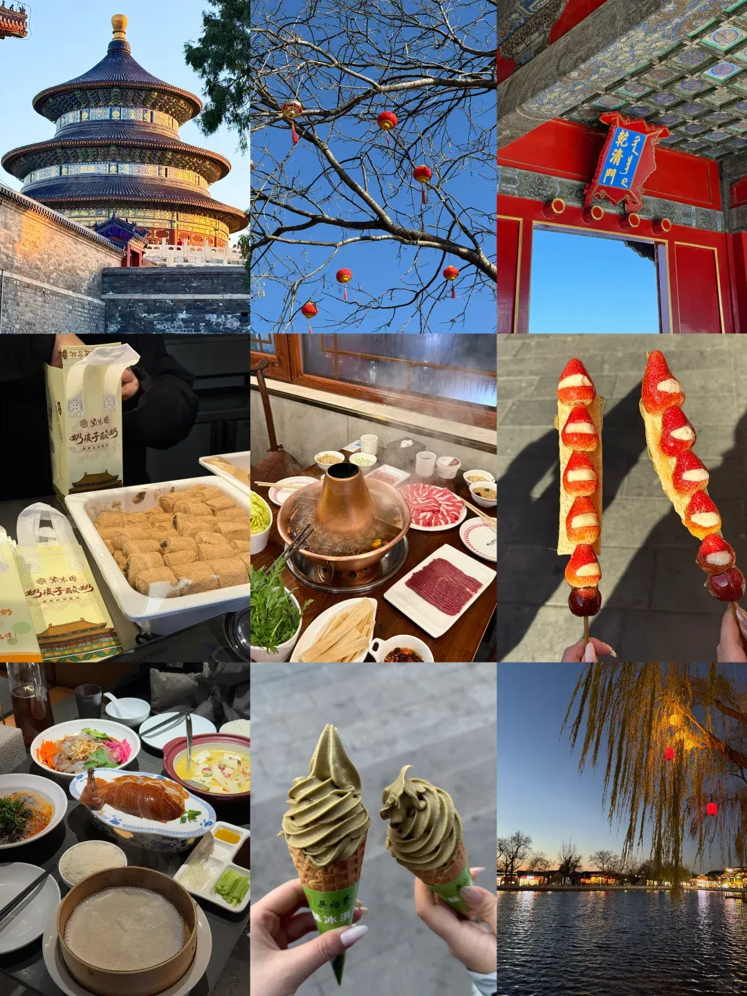 7:00胡同早餐店,看蒸汽混着呵气升腾;10:00 故宫开门,第一批踏雪进宫的仪式感;14:00 颐和园西堤,阳光把残荷影子拉长;16:00景山日落,看紫禁城从金黄变黛青;19:00火锅店里,铜锅的热气模糊了窗外夜景;21:00什刹海酒吧,民谣声中结束一天;