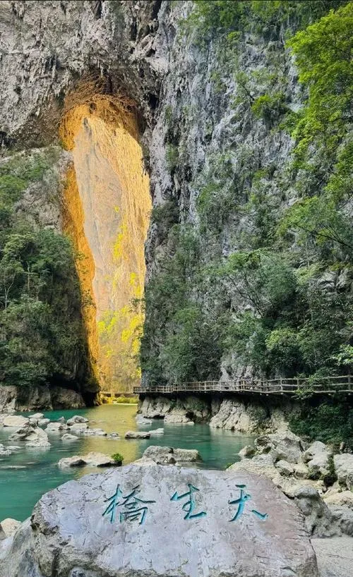 薄雾在峡谷里打着旋,脚下栈道微微潮,风从石缝里穿过,像一口清甜的泉水灌进胸腔,抬头是一座巨拱,像云沉下来,人站在桥洞下只剩心跳,天生桥的弧线像一把拉满的弓,岩壁上的水痕像岁月的年轮,脚边张拉江的水像一条翡翠丝带。