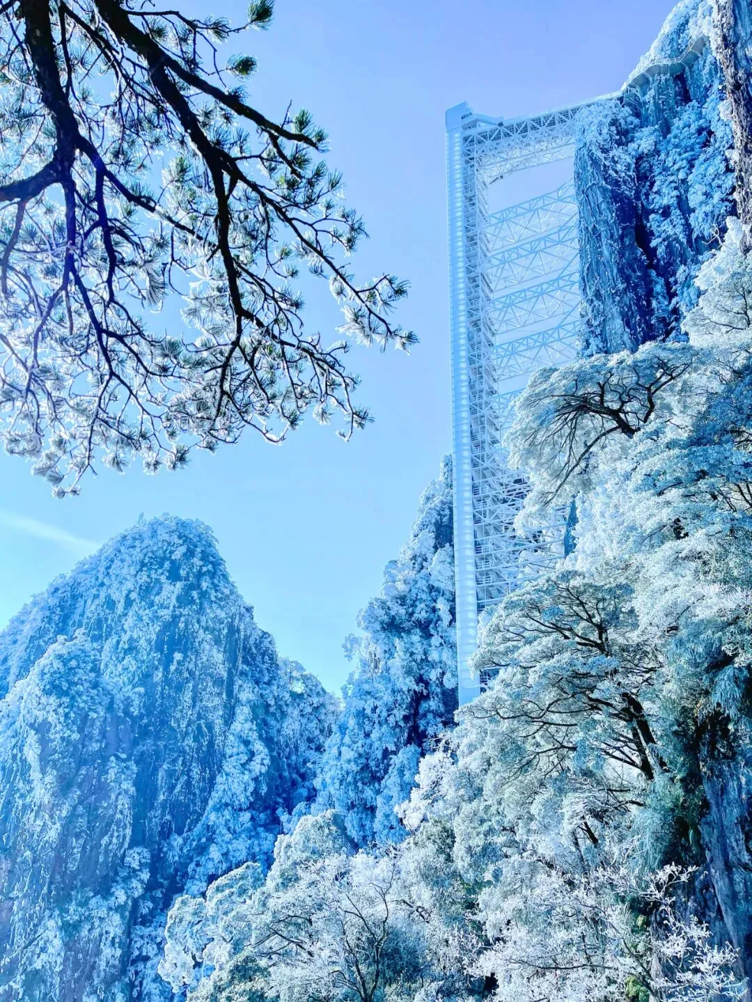 整个莽山都被白色的冰雪覆盖