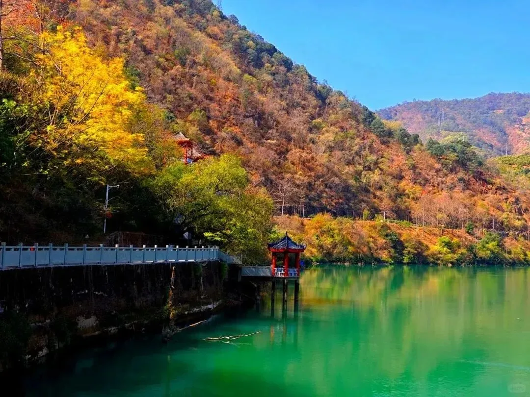 碧绿的湖水嵌在峡谷里,两侧山壁陡峭,坐船进去有种穿越到挪威峡湾的错觉——夸张吗? 去过你就知道我没骗人。