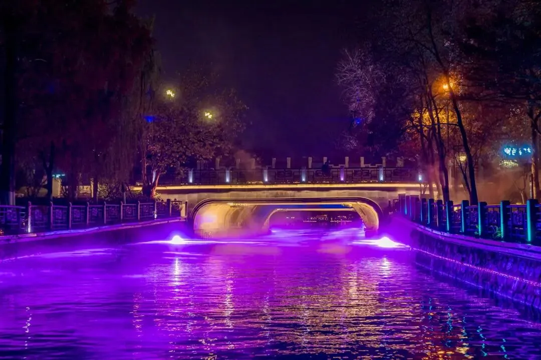从中公园北侧的直流水幕,到沈绣博物馆前的扇形水幕;从和平桥下的彩色光影隧道,到城南别业百年老墙上的3D Mapping秀……游船漫行,一幅幅流光溢彩的光影画卷接连映入眼帘。