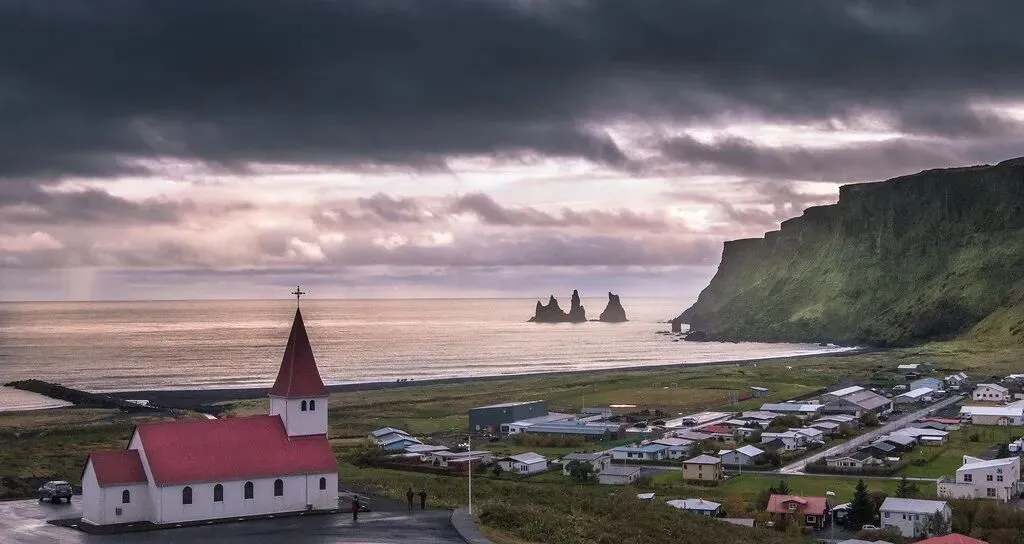 维克,位于冰岛的最南端,是个安静祥和的小镇。小镇后面是一望无际的大海。维克小镇最著名的景点是黑沙滩。另外你还能看到大海前方类似中国南方笔架山的几个小岛,因为地球转暖、水位上升,使一个多世纪前的几座挺拔的高山只剩下几个山头,而成了海鸟聚居的乐园。