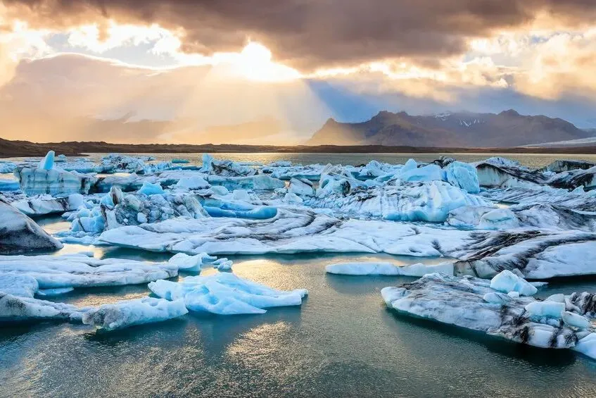 酒店早餐后出发,来到瓦特纳冰川国家公园(Vatnajökull National Park),游览冰岛著名的冰河湖 -【杰古沙龙冰湖】,湖水湛蓝、清澈,很多形状各异的超大冰块漂浮于湖面。随后来到冰河湖对面游览【钻石沙滩】,晶莹剔透的浮冰,在阳光照射下如珠光宝气的钻石。视天气和时间情况,还可自费参加【蓝冰洞探险】(仅限每年11-次年3月),从杰古沙龙冰湖出发,乘坐超级吉普车到达冰川边缘地区,探索欧洲最大的瓦特纳冰川,揭开古老冰盖之下的神秘冰蓝世界,见证冰岛冬季最独特、梦幻的美丽。结束后返回冰岛小镇酒店入住。(*蓝冰洞是纯天然形成的罕见自然现象,只有在冬季气温降至零度以下,冰层下的河水结成冰时,才有机会观赏到。每年不同的地点会形成风格迥异的洞穴。视当时的条件和安全情况而定,我们会在行程中有选择性地参观一座天然冰洞。蓝冰洞探险团需二次确认位置)