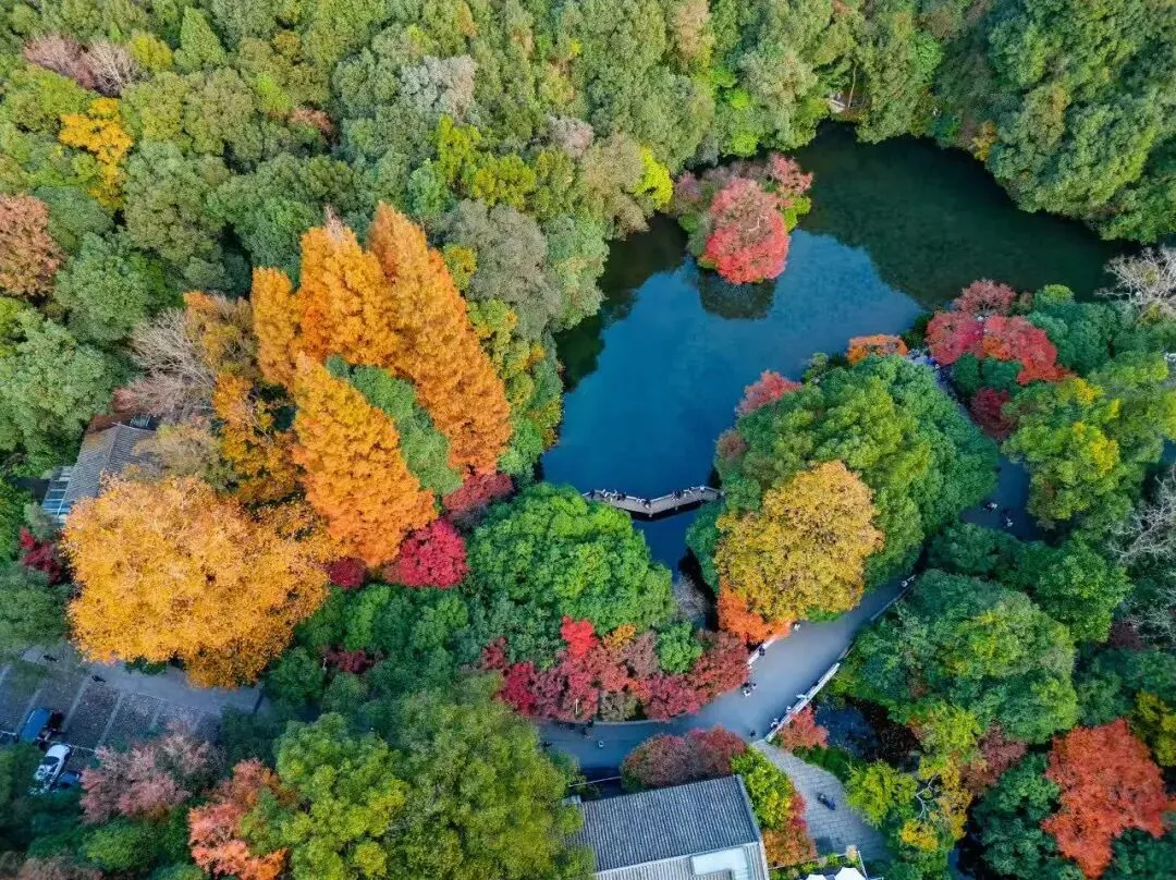 九溪烟树是西湖新十景之一,这里溪流潺潺,茶园遍布,秋季时枫叶渐红,与碧绿的溪水相互辉映,形成了一幅如诗如画的美景。