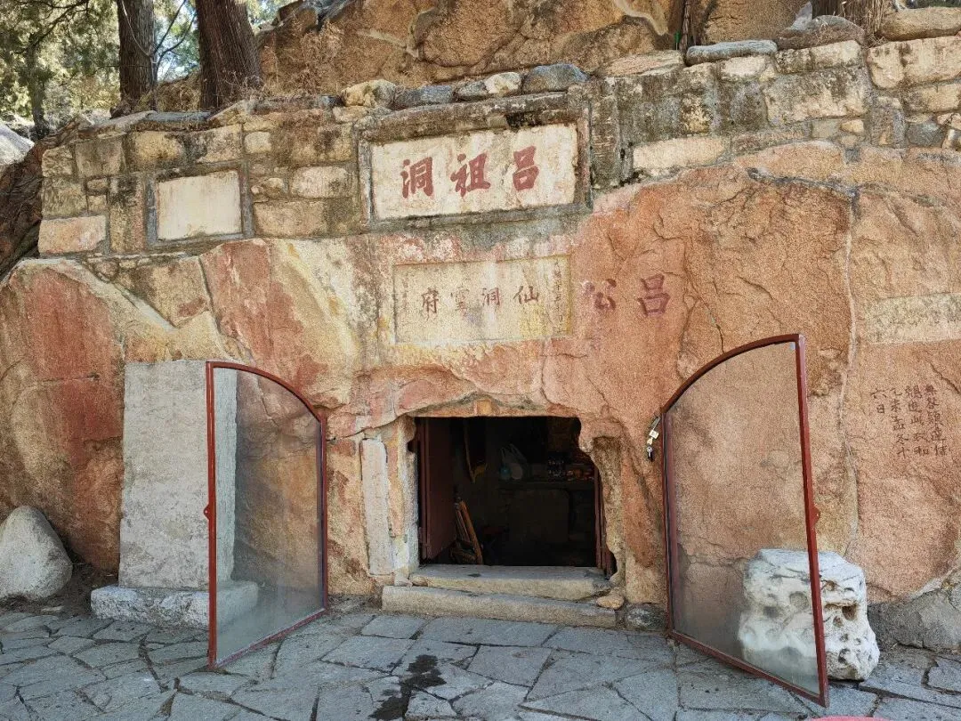 吕祖洞,又名“发生洞”(唐)、“金母洞”(宋)、“吕翁洞”(元),是一个纯天然的石洞,洞右侧矗立一块石碑,经年累月,碑面字迹已难以辨认。左侧蹲踞“云根”(玲珑石),灵巧精致。洞口高约1米左右,收腿弯腰可通过。