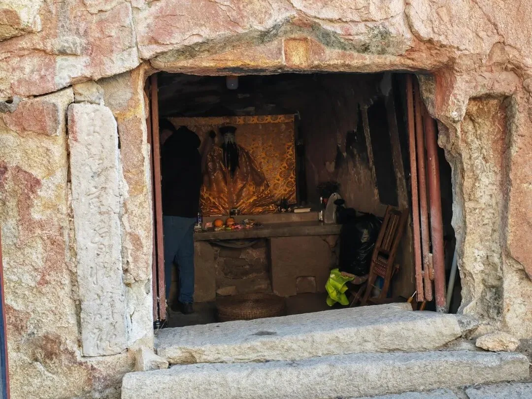 曲步进入其内,但见洞内面积较小,仅能容5、6人站立。洞东供台上,摆满祭拜着供奉的时令水果、甜点等,后面,吕祖塑像端坐,身着金袍,头戴纯阳,长髯飘飘,道骨仙风,强大,让人心生敬畏。