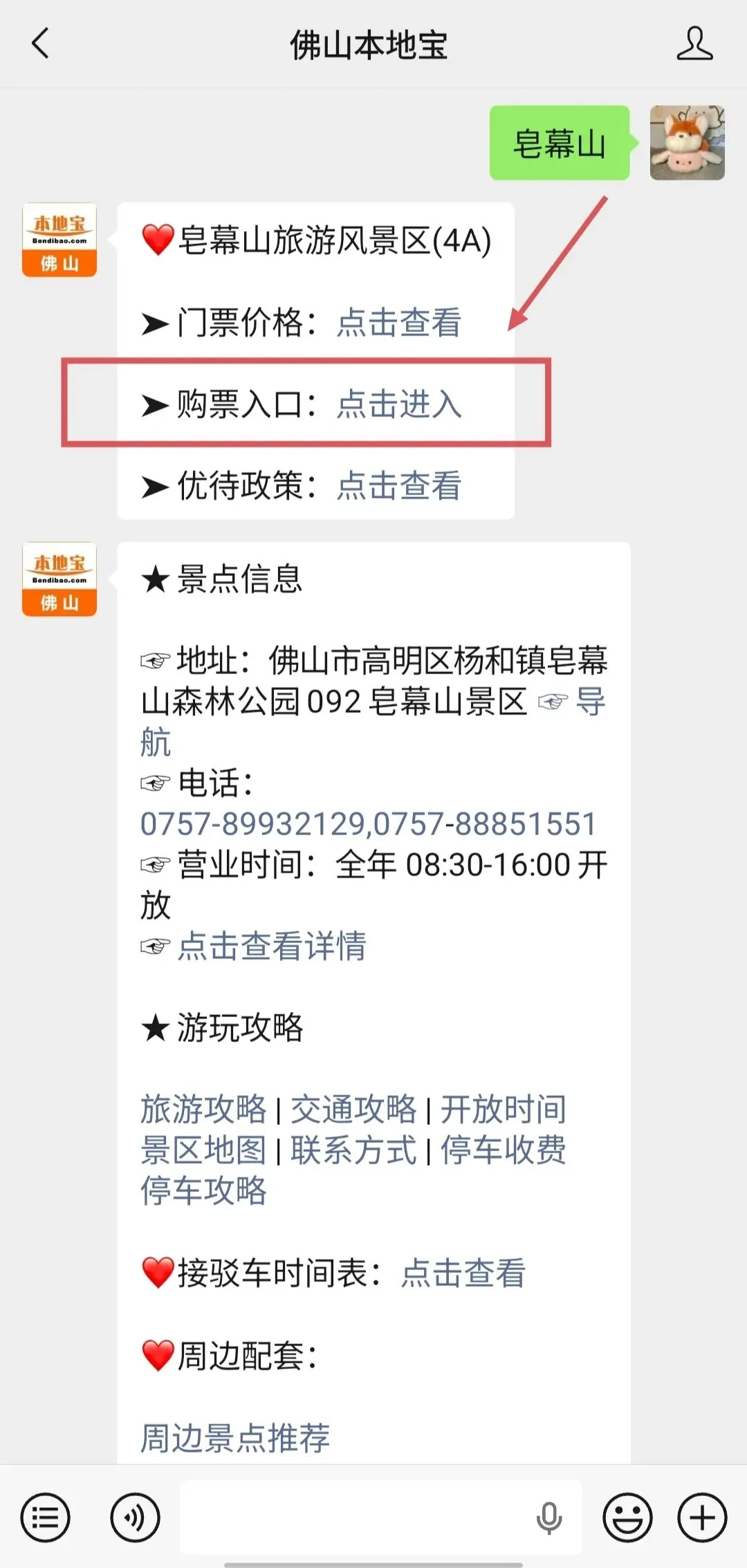 🙋在佛山本地宝公众号对话框回复以下关键词
