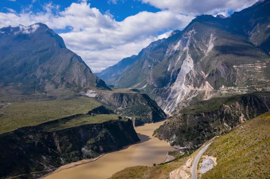 △站到中虎跳峡江心 / 图虫创意 当你安然渡过中虎跳,来到下虎跳又会重归平静。 金沙江变得不再吓人,哈巴雪山和玉龙雪山也重新归于平缓,视野开阔,万物明朗,让人有种“高峡出平湖”之感。
