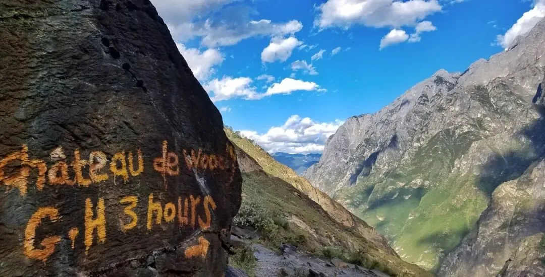 △虎跳峡的路标有很多外国背包客留下的英文 / 图虫创意 或许中国人第一次听虎跳峡这个名字,还是1986年那场轰轰烈烈的中美漂流对决。 为了不让美国商人肯·沃伦(Ken Warren)率先漂流长江,中国人自发组成了“科漂队”和“洛阳队”。 但是,要漂长江,势必要经过最凶险的上游——虎跳峡,那里洪水滔天,足以撕裂任何来往船只。 最终,那场万人瞩目的对决,以中美长漂队退出,我们牺牲11人代价,勉强完成长江漂流而告终。
