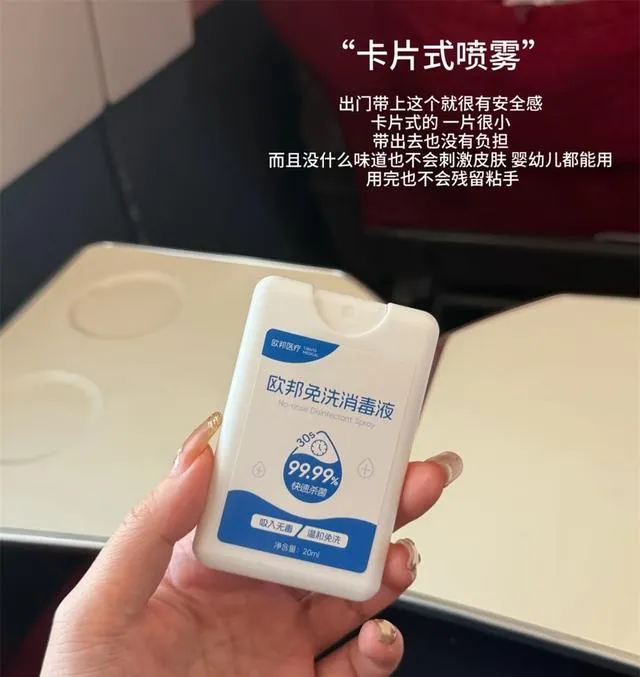 疫情那几年,大家都讲究卫生,我这人也算养成习惯了。外面吃个小吃、上个公共厕所,哪能每次都指望有水龙头?有时候包里摸出来那种小卡片喷雾,喷一喷手,心里也踏实。之前有邻居跟我吐槽,她老公觉得用这个太“事儿妈”,结果有次带娃出去,孩子手上沾了点东西,她翻出卡片消毒液直接搞定,老公当场闭嘴。从那以后,家里每次出门都要带上。