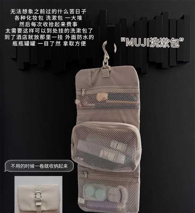有时候住酒店,洗漱台小得很,瓶瓶罐罐一放就乱。去年双十一我跟老婆一人买了个折叠洗漱包,展开来分格收纳,啥都能装进去。和楼下邻居去云南玩,她还专门夸我收拾得利索,东西一目了然。