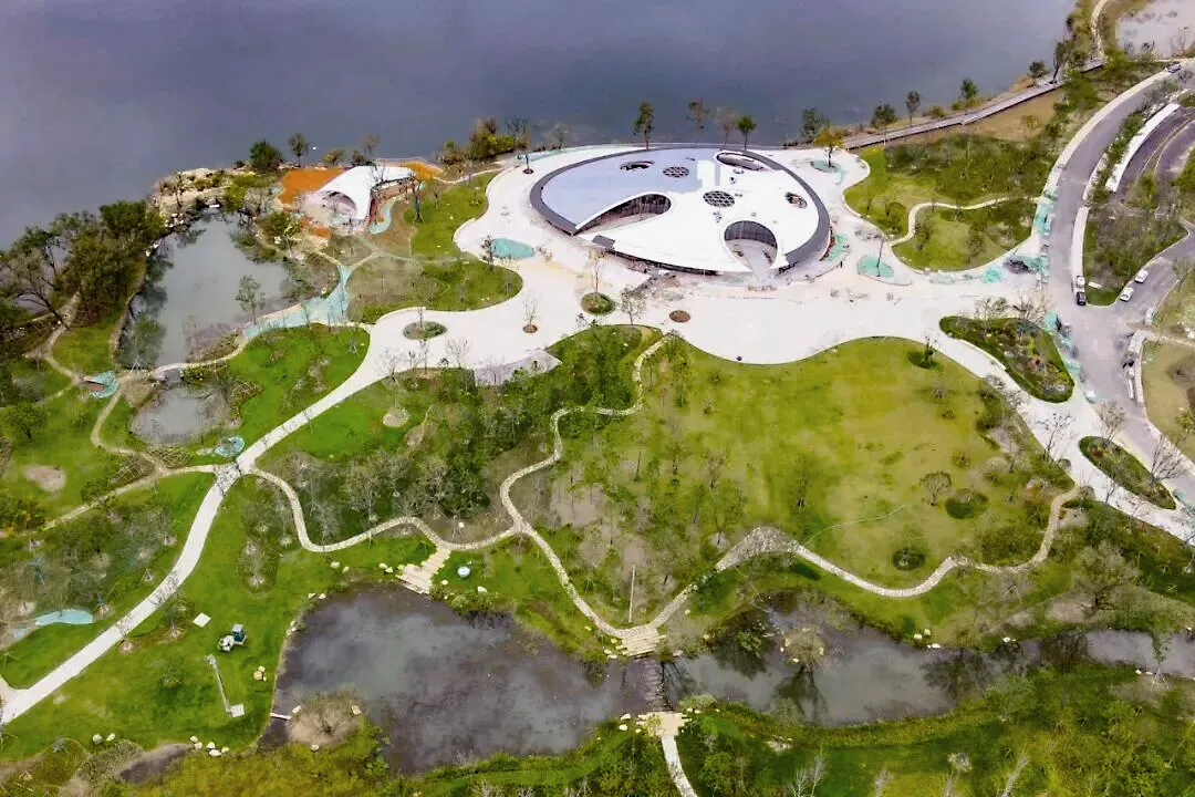 项目深度挖掘地域文化内涵,以弁山、水漾的自然肌理为基底,让建筑以轻盈舒展的姿态自然融入长田漾的山水画卷。