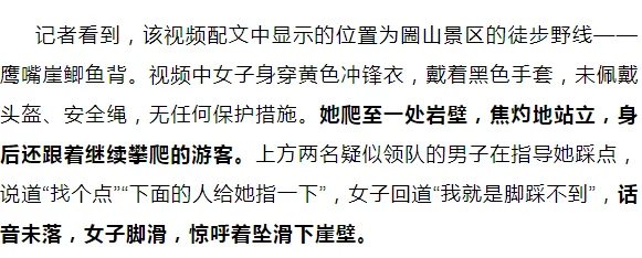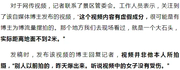 女子攀爬江苏一景区野道不慎坠崖?官方回应:视频有虚假成分,事发点不到2米高