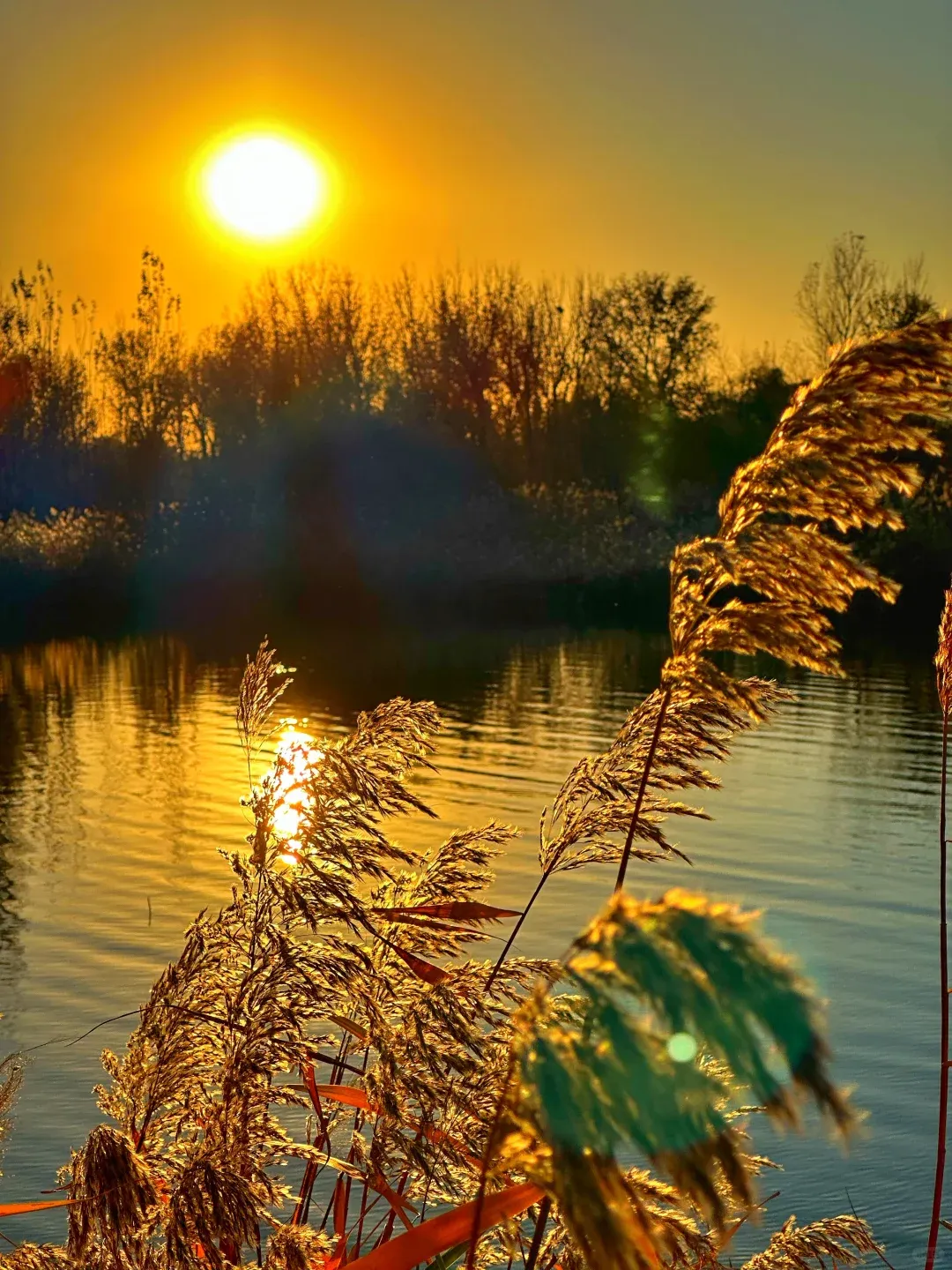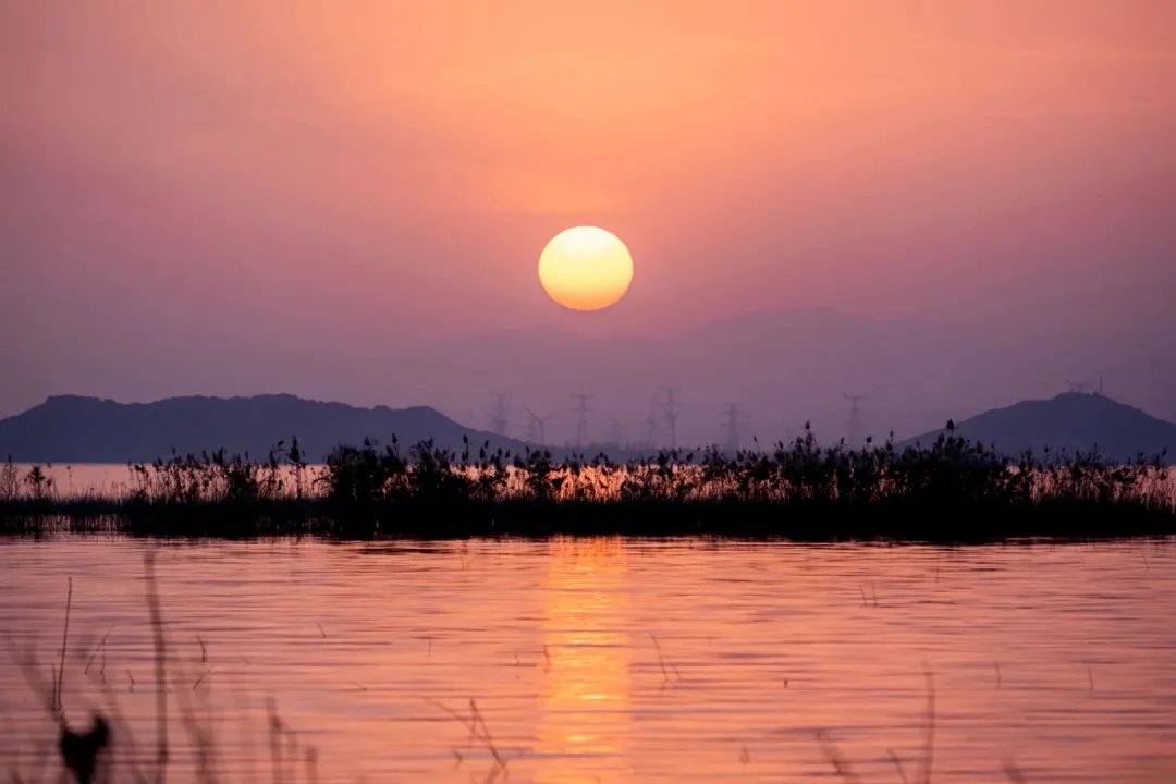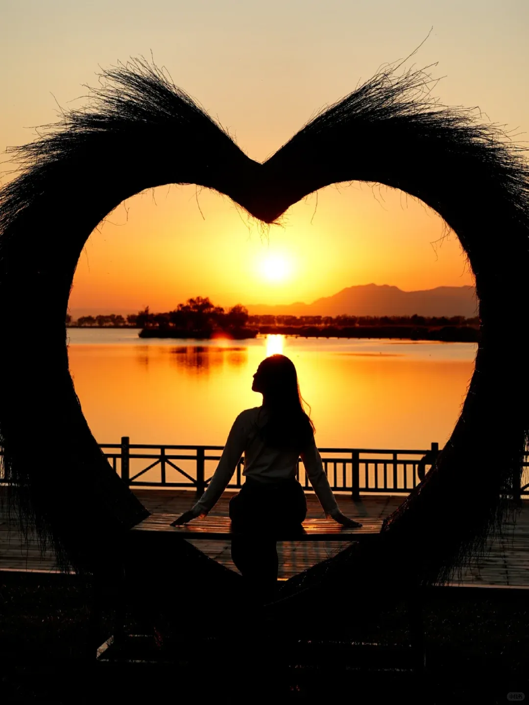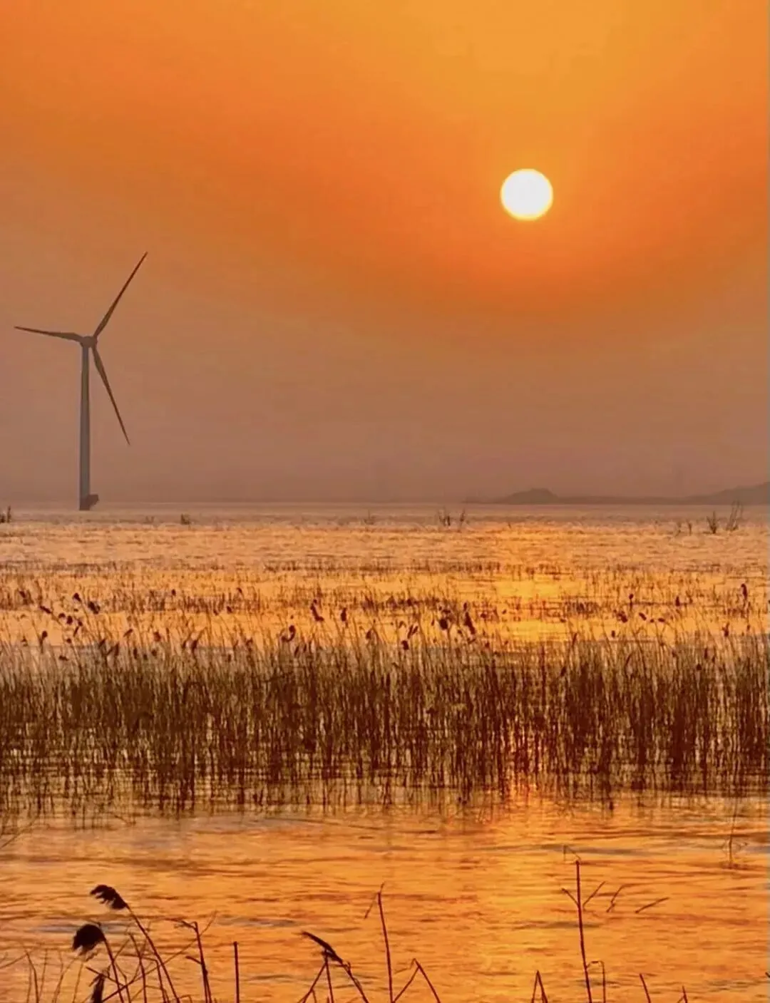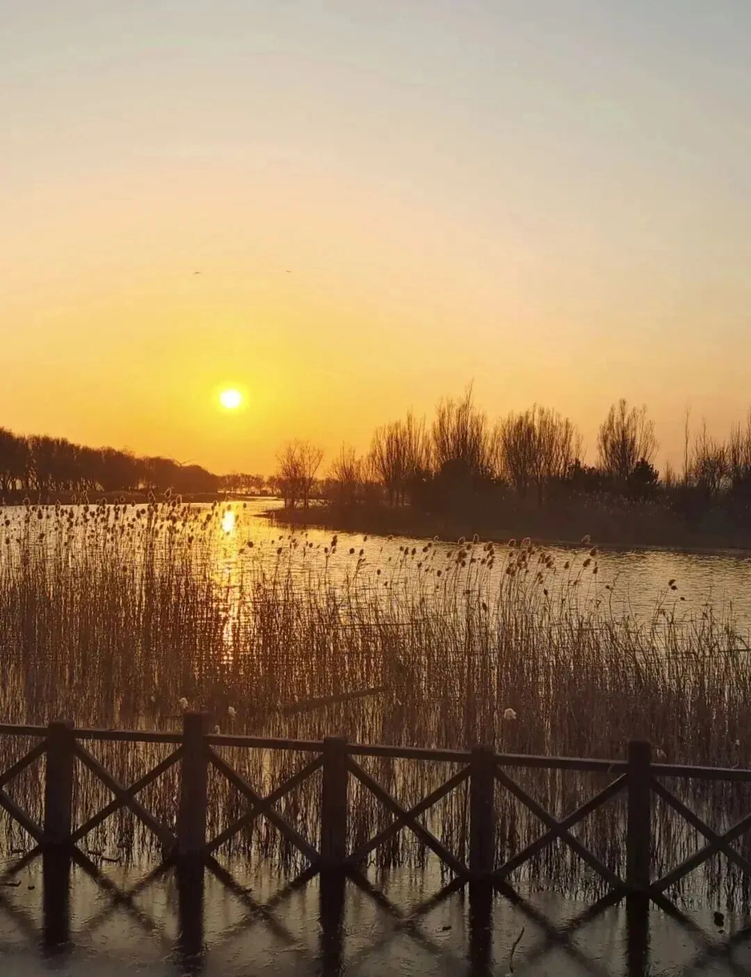 选择在芦苇荡中间的栈道上拍照,以芦苇和夕阳为背景,分分钟拍出大片。也可以蹲下来,用低角度拍摄芦苇和落日的倒影,超级有意境。