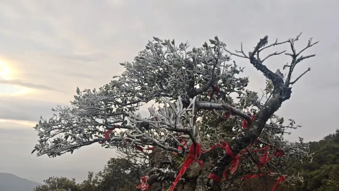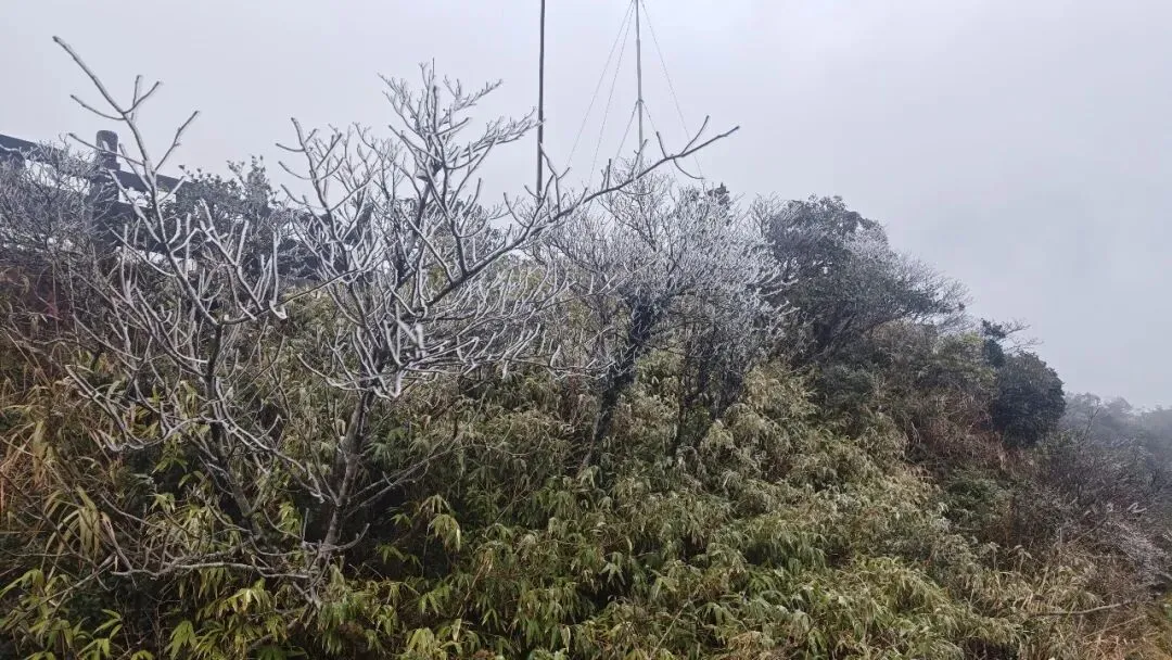 靓哦!南宁大明山景区出现小范围冰凌雾凇景观