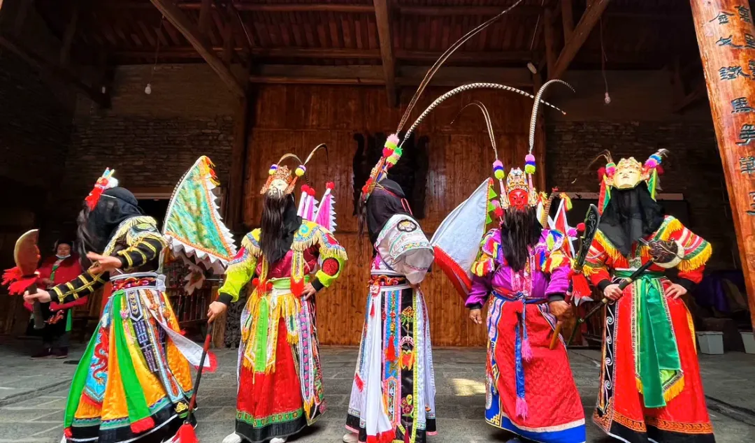 地戏:属于傩戏的一种,是军队出征前震慑敌人、鼓舞士气的仪式,后被屯堡人保留下来。演出以村寨为单位,演员均为农民,表演风格古朴粗犷,内容只有武戏,被誉为 “中国戏剧的活化石”,2006 年被列入第一批国家级非物质文化遗产保护名录。