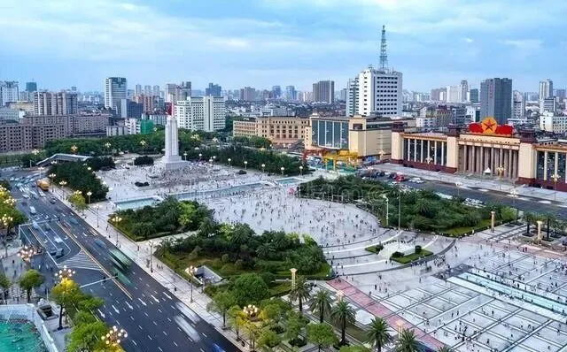 八一广场在市中心 , 非常大 , 一眼望不到头。
