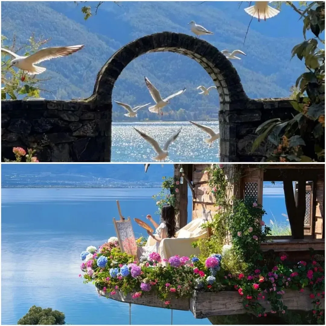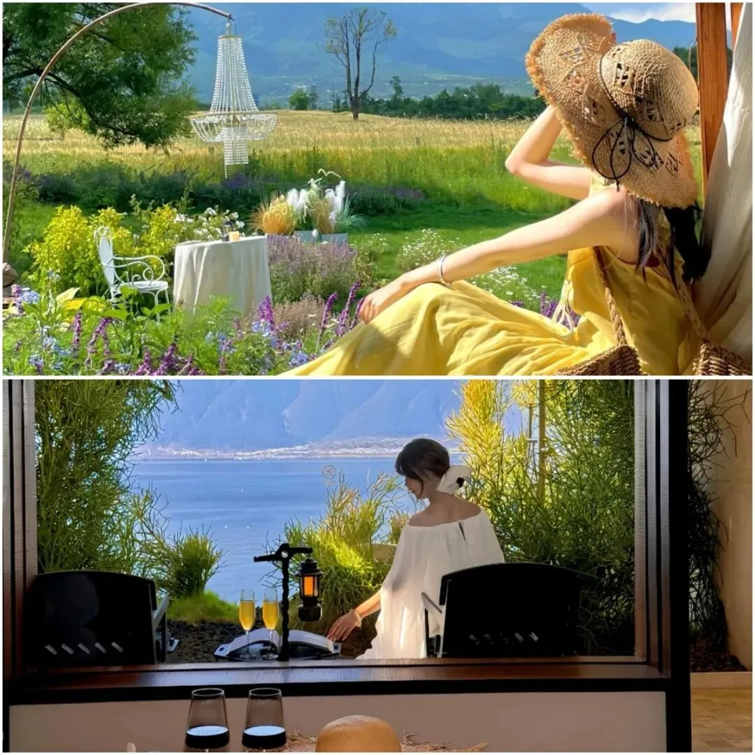 ✅双廊古镇:下午时分到双廊码头看日落和夜景,傍晚可体验一次双廊的海景房,我这次住的房间露台可直接触摸到洱海,时不时还有海鸥飞过来;房间的波西米亚风装饰,拍照很有度假风;她们的服务也很热情,还赠送了超好吃的下午茶;坐在窗边,落日晚霞也一览无余,非常治愈~