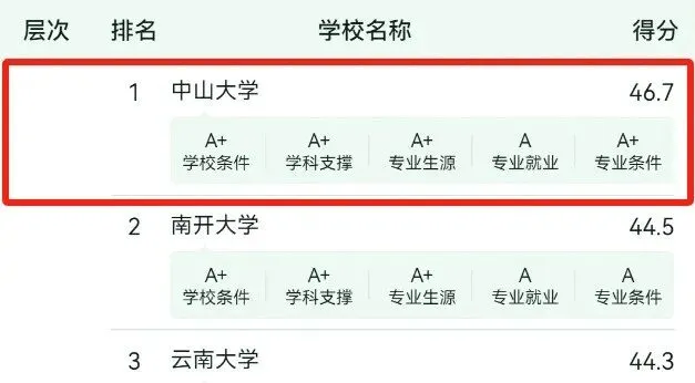根据校方介绍,中山大学的工商管理学科(旅游管理为其二级学科)在第四轮学科评估中被评为A+(据非官方消息,第五轮也是A+)。