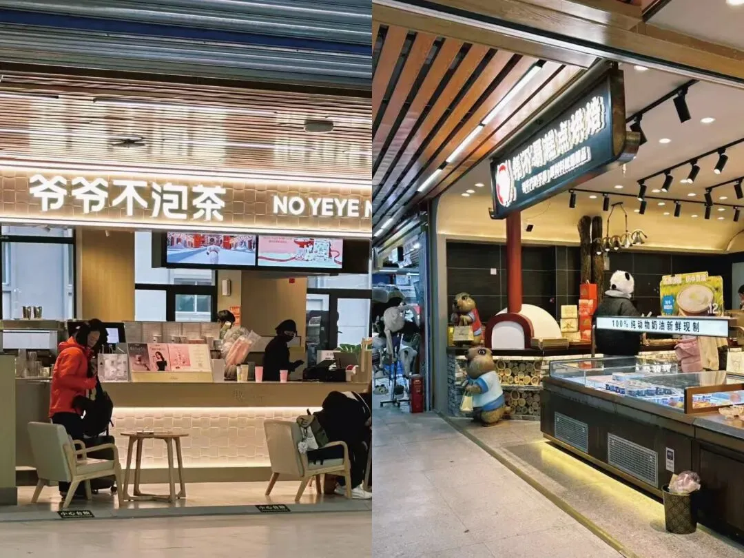 第二候车大厅有瑞幸、爷爷不泡茶、便利店