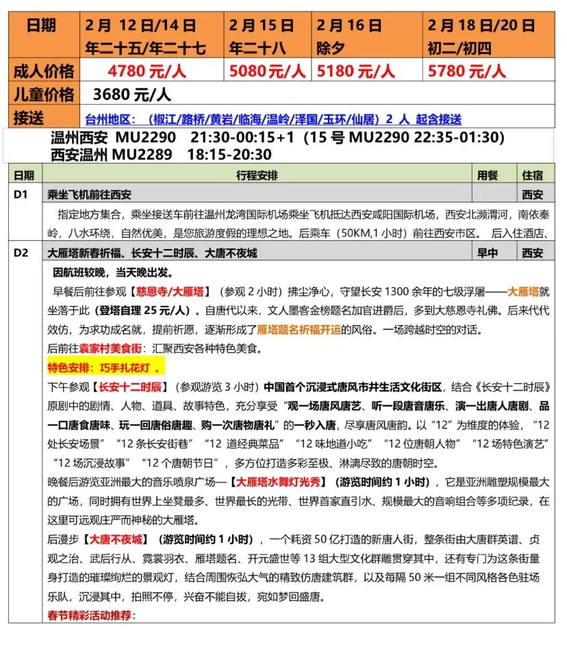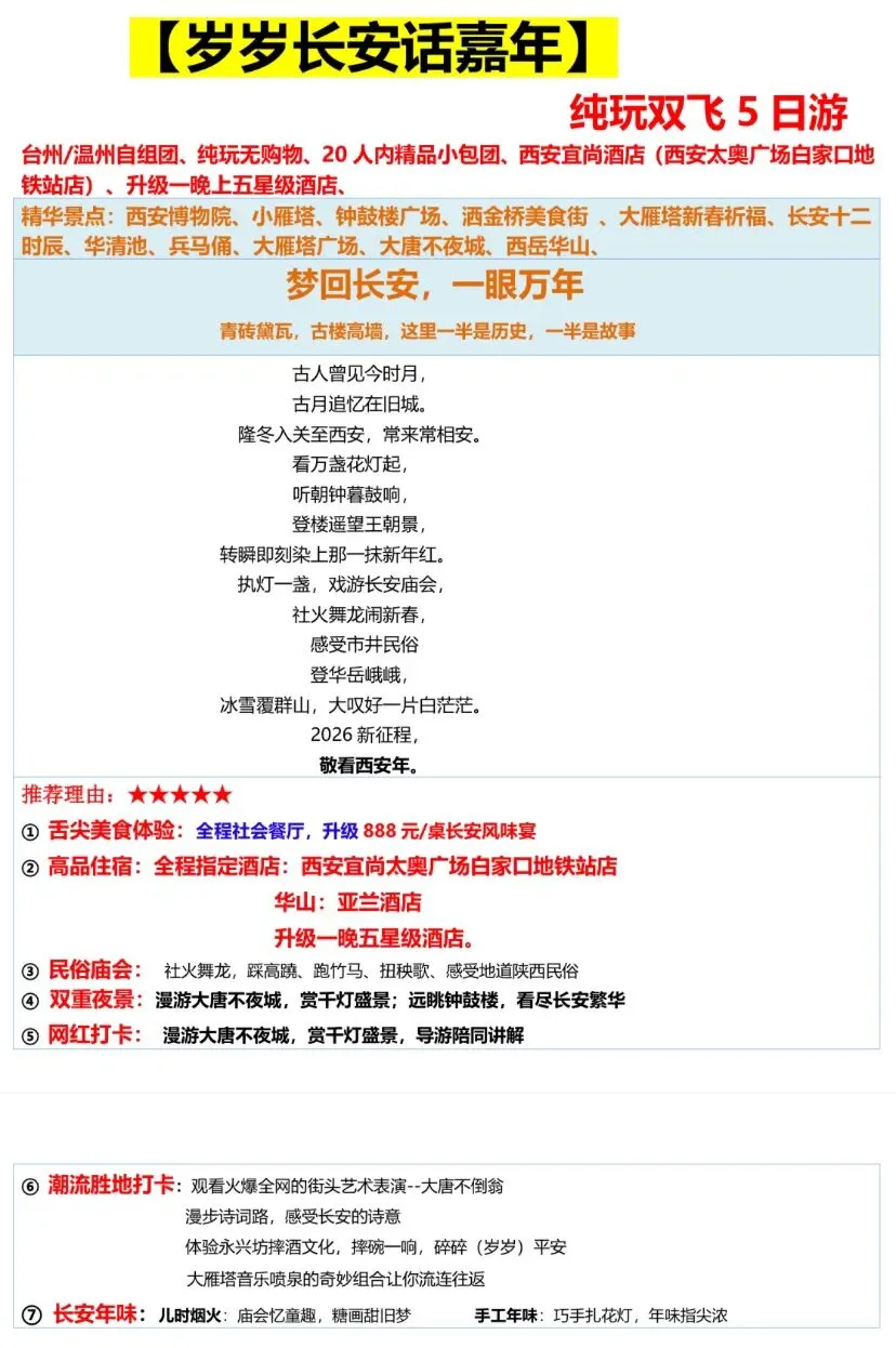 旅游资讯:岁岁长安话嘉年,四星双飞五日游