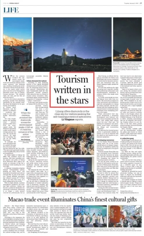 《中国日报》头版聚焦云南开辟旅游产业新局面